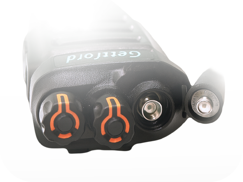 El botón PTT grande es cómodo de presionar incluso con guantes gruesos y su moderno diseño de goma naranja facilita su visibilidad en la oscuridad.